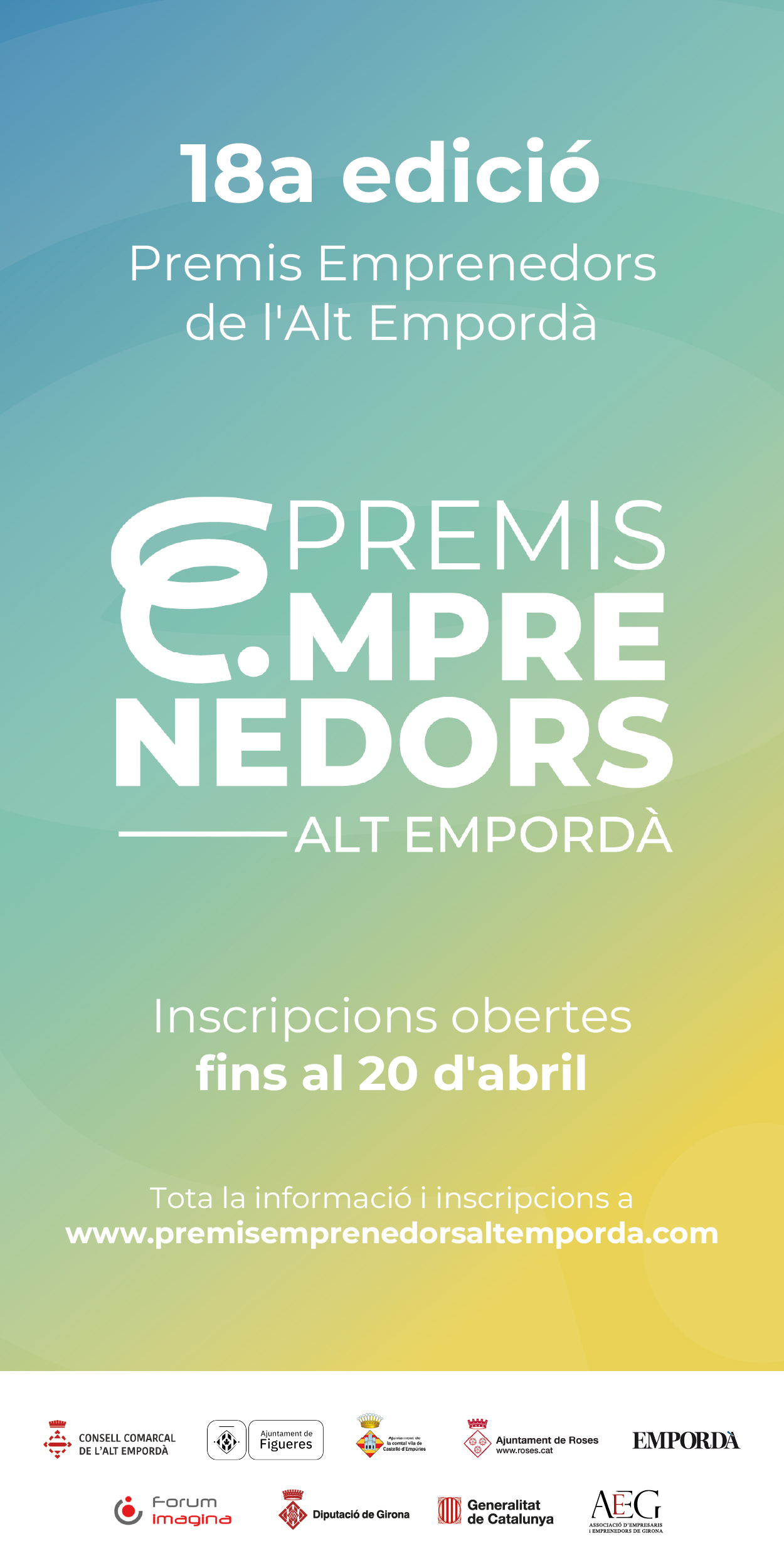 • Der Unternehmerpreis für neue, tragfähige und innovative Geschäftsprojekte zeichnet das tragfähigste, innovativste und wachstumsstärkste Geschäftsprojekt mit Hauptsitz und Geschäftstätigkeit in Alt Empordà aus. Es gibt zwei Preise: